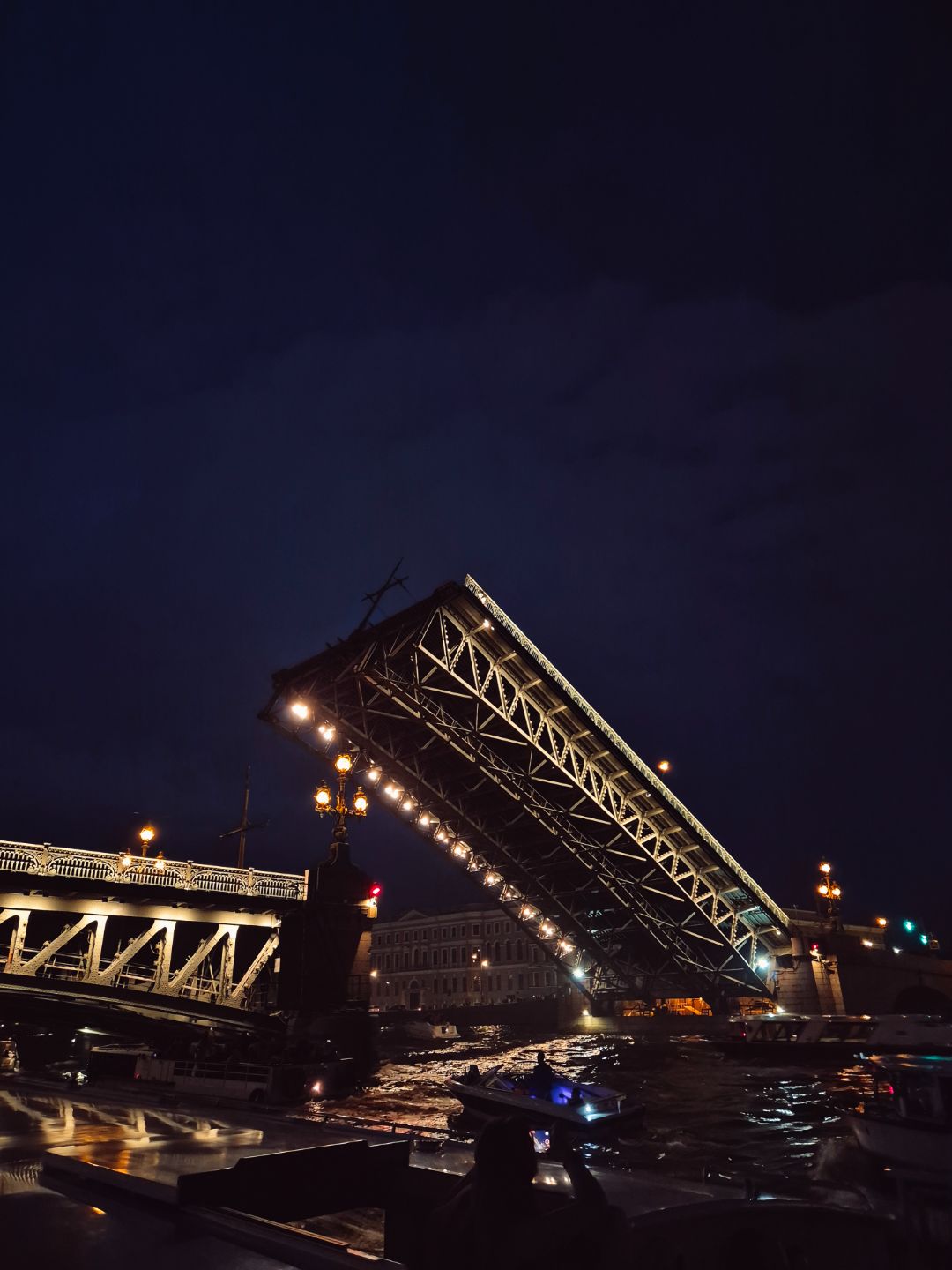 - В программу входит просмотр разведения Дворцового моста (разведение в 1:10) и Троицкого моста (разведение в 1:20)